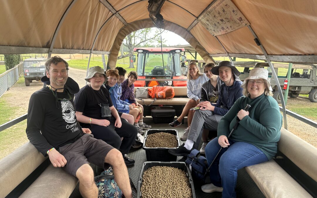 Zebras kicking up dust and dodging each other hold Gavin’s attention while graceful black bucks show off their twisted antlers to Fiona’s delight. Alfie stares in disbelief at the roaming giraffes because he cannot imagine seeing a giraffe outside of a zoo. He shouts in joy at seeing Capybaras, his personal research subject.